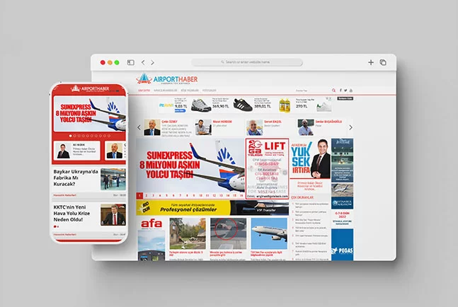 Airporthaber Haber Sitesi'nin tasarım, haber yazılımı, reklam yönetimi ve grafik desteği sayesinde, havacılık sektöründe önemli bir konumda yer almasını sağladık.